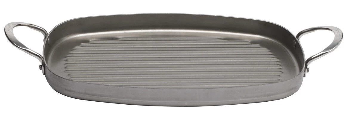 De rechthoekige De Buyer grillplaat is van plaatstaal en is 38 cm lang en 26 cm breed. Plaatstaal zorgt voor een snelle warmteverdeling op de plaat. De grillplaat heeft 2 handgrepen. Grill met de plaat uw dagelijkse etenswaren, zoals groenten, gevogelte en vlees. De pan is voorzien van een beschermende laag bijenwas die voor gebruik verwijderd dient te worden. Deze laag voorkomt roestvorming in de pan vóór gebruik.