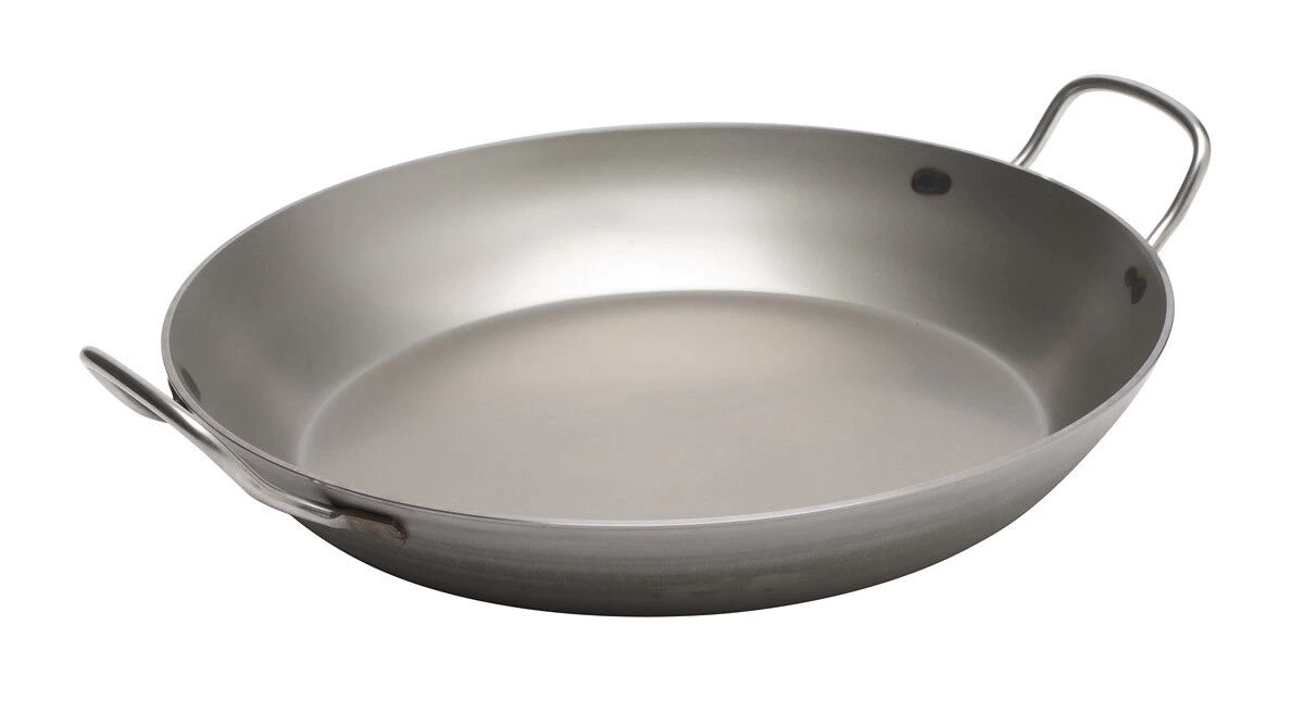 De ronde De Buyer paellapan is van plaatstaal en heeft een diameter van 36 cm. Dit materiaal geleidt warmte optimaal en verdraagt hoge temperaturen. 2 handgrepen vergroten het gebruiksgemak.