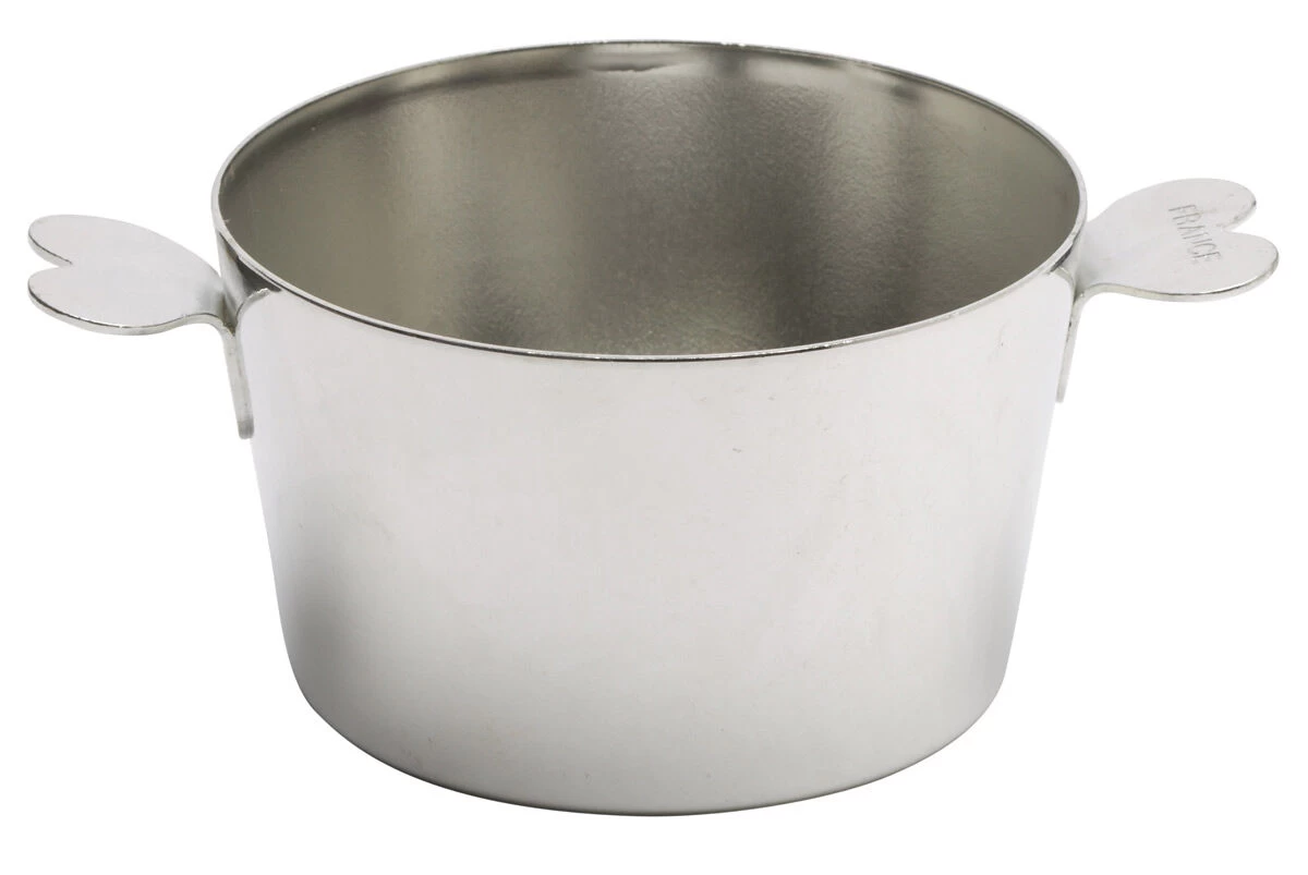 De charlottevorm van de Buyer is vervaardigd uit vertind roestvrij staal en heeft een diameter van 10 cm. De vorm heeft 2 sierlijke hartvormige handgreepjes. Gebruik de taps toelopende vorm voor het bereiden van verschillende soorten desserts zoals pudding of ‘Charlotte Russe’.