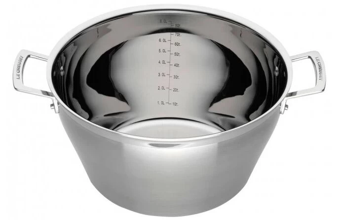 De inductiegeschikte Le Creuset Magnetik jampan/mengschaal is vervaardigd van roestvrij staal. De pan heeft een diameter van 30 cm, een inhoud van 9,3 liter en is voorzien van twee grepen. De pan heeft een aluminium tussenlaag, ingekapseld in roestvrij staal, die de warmte gelijkmatig geleidt van de bodem tot aan de rand. Door de inhoudsaanduiding aan de binnenzijde ziet u in één oogopslag hoeveel er in de pan zit.