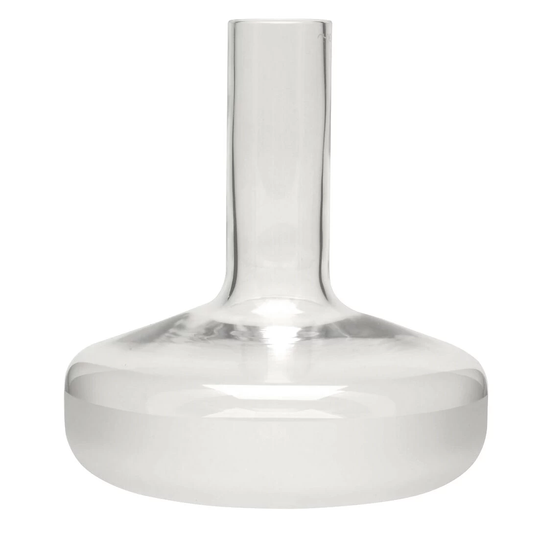 De decanteerkaraf van Nude is vervaardigd uit glas en heeft een diameter van 21 cm en hoogte van 23 cm. De karaf heeft een transparante bovenkant en mat witte onderkant. Gebruik de karaf voor het decanteren en serveren van wijn en andere dranken.