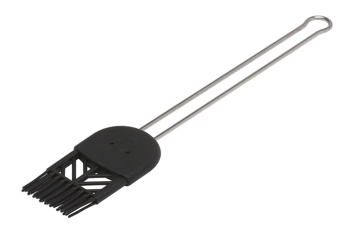 Met de bakkwast van Rösle voorziet u bijvoorbeeld quiches en croissants van eigeel of groenten voor op de grill van olie. De kwast is temperatuurbestendig van -70°C tot +220°C. Na gebruik is de kwast op te hangen.