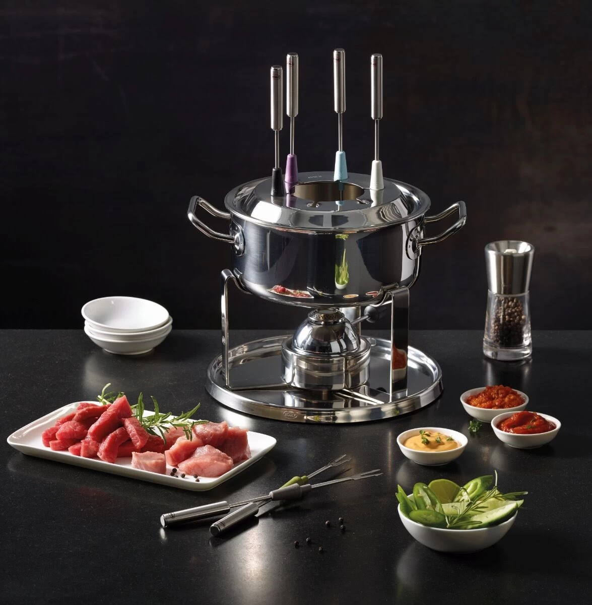 Rösle fonduesets zijn gemaakt van een hoogwaardige kwaliteit roestvrij staal. De rechaud is opklapbaar en de pan is door de dikke bodem ook te gebruiken op elke conventionele warmtebron.