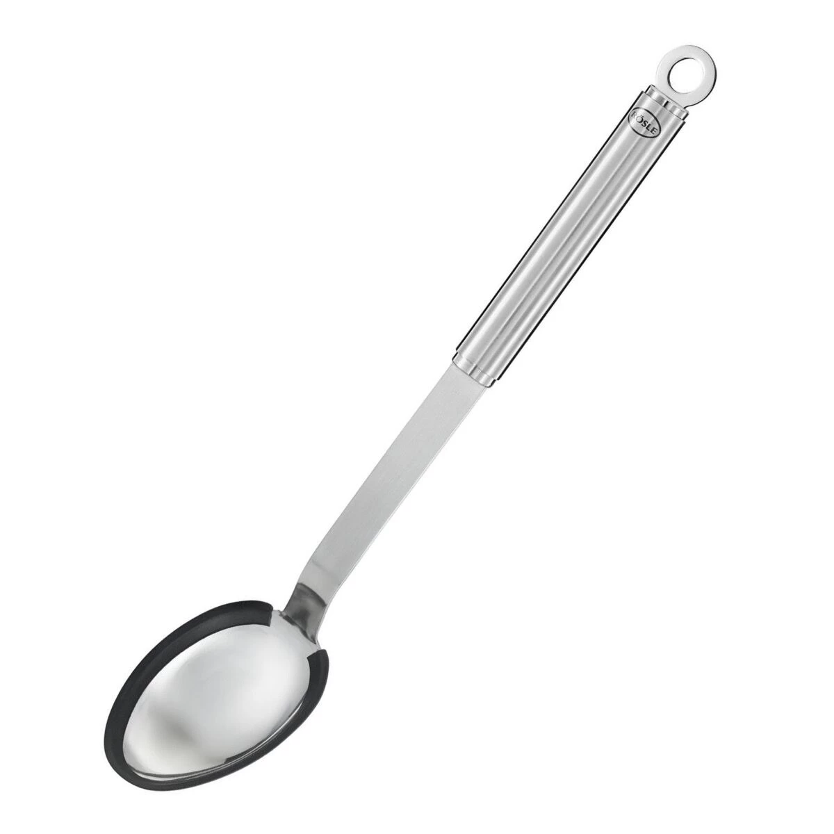 Met het brede blad van de Rösle opscheplepel schept u eenvoudig en efficiënt gerechten uit de pan op uw bord. Tevens is de spatel geschikt voor roeren in pannen. Na gebruik is de lepel op te hangen.