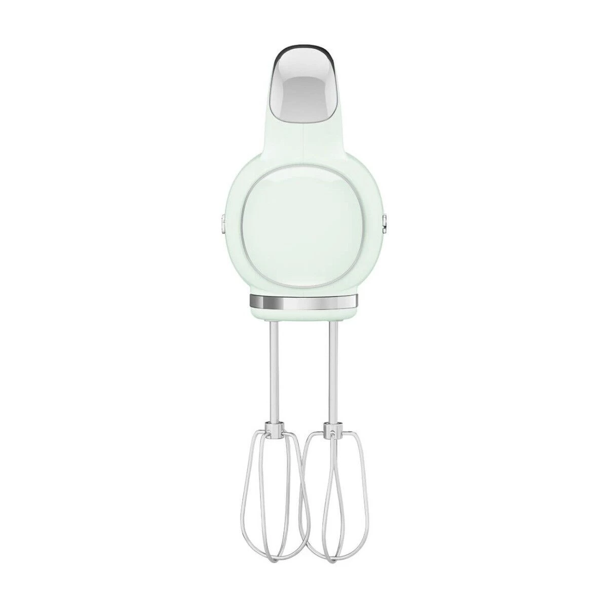 Deze handmixer 50’s style van SMEG is gemaakt van watergroen kunststof en heeft een vermogen van 250W. De mixer is eenvoudig in gebruik en beschikt over 9 snelheden. Voor het met gemak kloppen van room en eiwit, het kneden van deeg en mengen van ingrediënten.