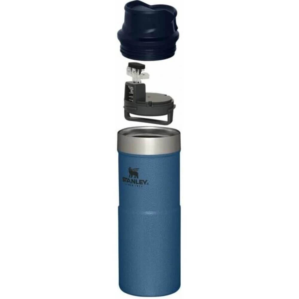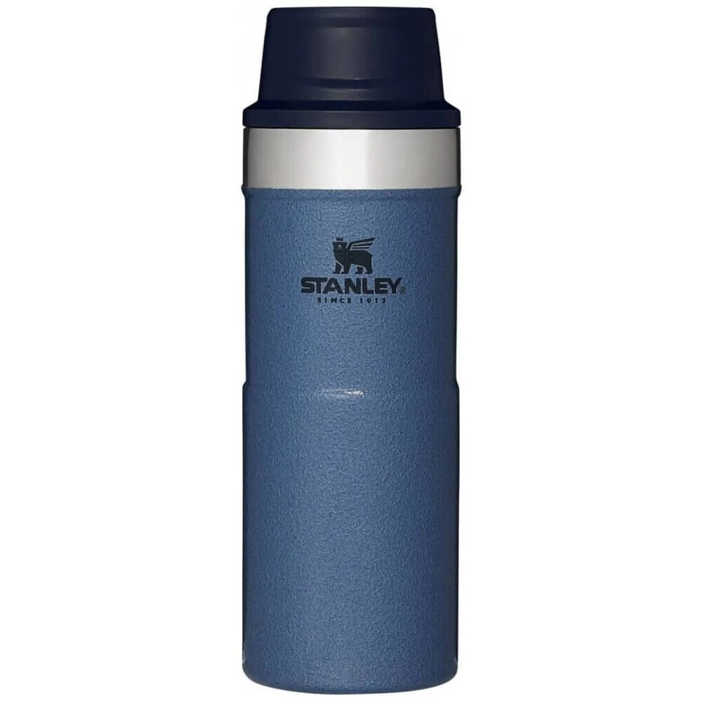 De Hammertone Lake, blauwe, Stanley The Trigger-Action Travel Mug thermosbeker is gemaakt van roestvrij staal en heeft een inhoud van 350 ml. De Trigger-Action Travel Mug is een echte lichtgewicht onder de thermosflessen! De fles is compact mee te dragen en gemakkelijk met één hand te gebruiken: door een simpele druk op de knop opent de drinkbeker. Uw drank blijft in de beker tot 7 uur lang warm of koud, wat gemak betreft hoeft u dus nergens op in te leveren. De Stanley The Trigger-Action Travel Mug is BPA-vrij en volledig lekvrij. Hierdoor is de beker extra veilig in gebruik.