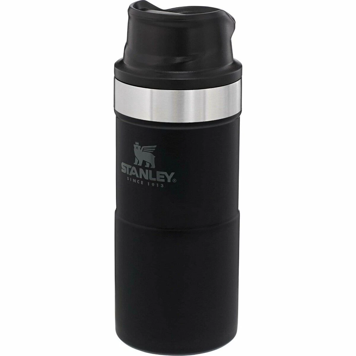 De Matte Black, matzwarte, Stanley The Trigger-Action Travel Mug thermosbeker is gemaakt van roestvrij staal en heeft een inhoud van 350 ml. De Trigger-Action Travel Mug is een echte lichtgewicht onder de thermosflessen! De fles is compact mee te dragen en gemakkelijk met één hand te gebruiken: door een simpele druk op de knop opent de drinkbeker. Uw drank blijft in de beker tot 7 uur lang warm of koud, wat gemak betreft hoeft u dus nergens op in te leveren. De Stanley The Trigger-Action Travel Mug is BPA-vrij en volledig lekvrij. Hierdoor is de beker extra veilig in gebruik.